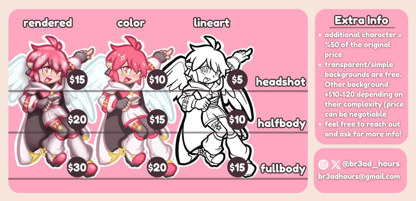✦ Once you are ready with your request, please contact me about your commission through DMs /Email /Discord using this template below: